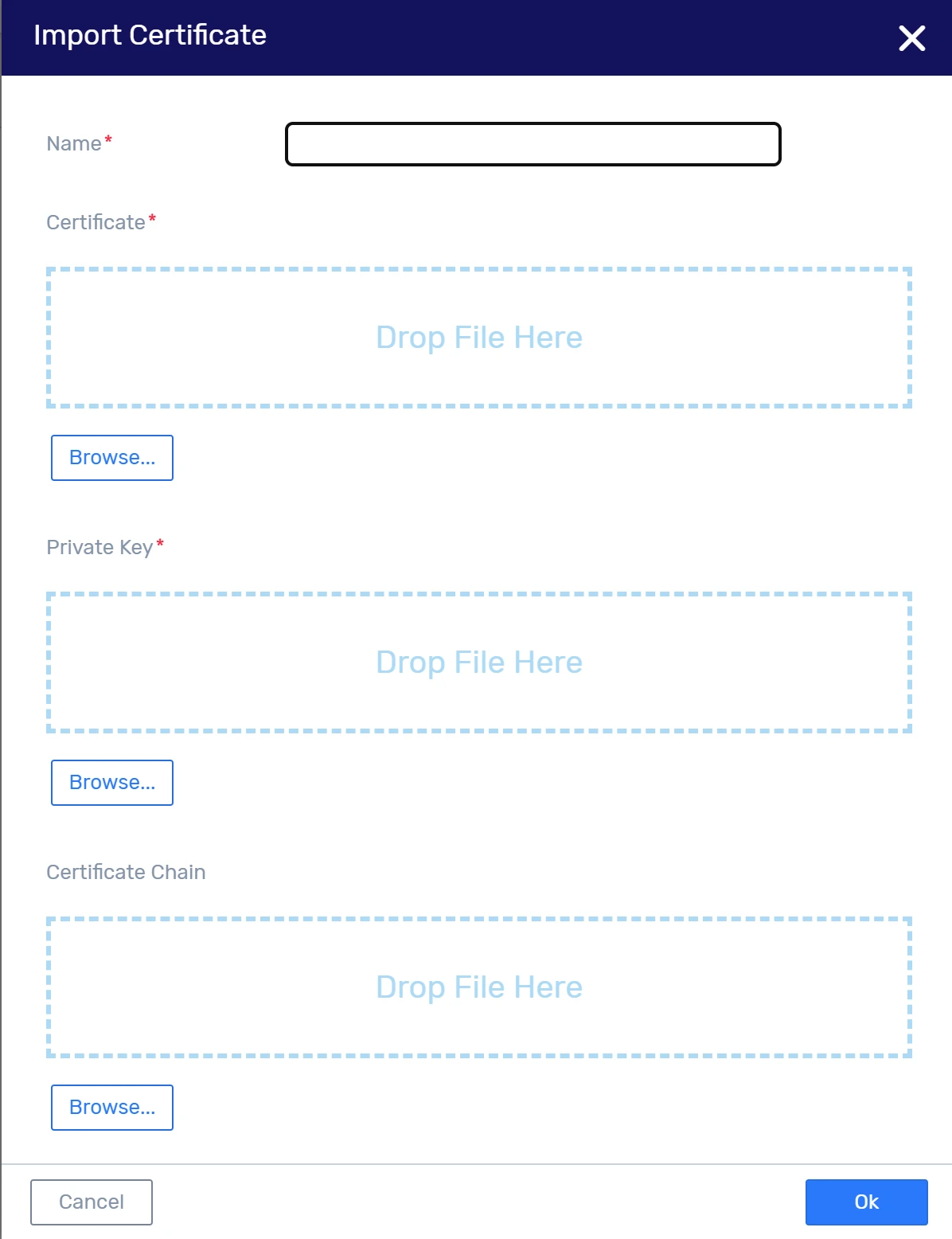 • Import: You can upload your own certificates issued by a trusted Certificate Authority (CA).